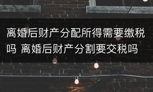 离婚后财产分配所得不需要缴税,目前所有的离婚之后的财产分配都不需要缴税。至于具体的财产分割方面的情况的话,双方当事人是可以首先在自主协商的情况之下来进行确定的,如果协商不成的话,在法院判决。