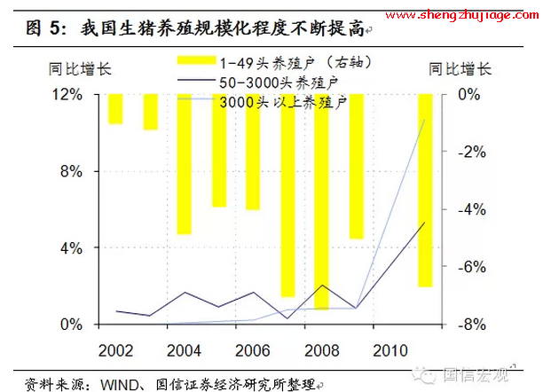 第二个差别是,散养户逐渐退出、规模化养殖户比重不断提高,我国“猪周期”的波动性有望下降,同时规模化养殖水平的提高也有效削弱了以往疫病等外生性冲击事件对于猪价助涨助跌的影响。