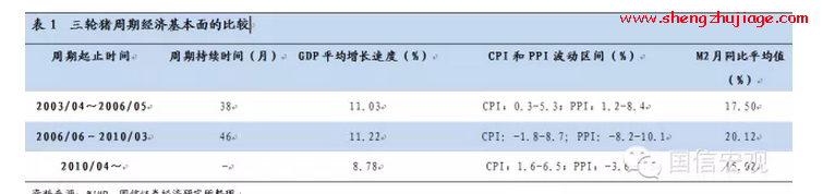 第一轮猪周期是2003年4月-2006年5月,持续时间38个月。从经济货币周期看,这一时期经济基本面的主要特征是流动性过剩和投资过热,经济处于周期性繁荣阶段,GDP增速保持在11%左右,2004年3季度的CPI同比一直高居在5.3%以上。