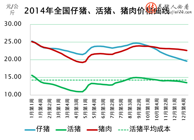1、猪价持续走低。2014年全年出栏活猪平均价格仅13.47元/公斤,比保本价低了将近1元。