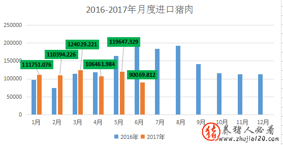 据海关数据显示,我国上半年累计进口鲜、冷、冻猪肉66.2万吨,比2016年同比减少13%,但这并不意味这今年进口肉对国内生猪供应影响小。因为今年国内生猪存栏形势和去年尽全不同,去年是供小于求,而今年则是供大于求。在这种供大于求的局势下,进口肉数量就算减少也是多的。而从当前形势看,后半年进口肉依然不容忽视。