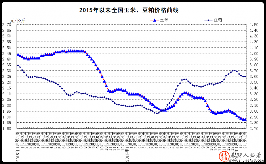 饲料价格。全国玉米均匀价格1.88元/公斤,与前一周持平,同比下降10.5%。主产区东北三省玉米均匀价格为1.43元/公斤,比前一周下降1.4%;主销区广东省玉米价格2.02元/公斤,与前一周持平。全国豆粕均匀价格3.6元/公斤,与前一周持平,同比上涨16.5%。育肥猪配合饲料均匀价格为3.07元/公斤,比前一周下降0.3%,同比下降0.3%。肉鸡配合饲料均匀价格为3.13元/公斤,与前一周持平,同比下降0.3%。蛋鸡配合饲料均匀价格为2.86元/公斤,与前一周持平,同比下降0.7%。