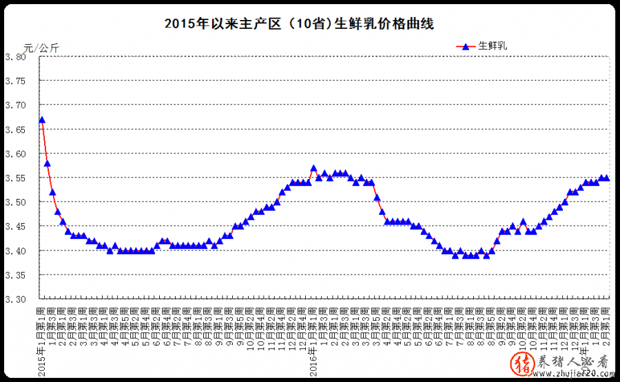 生鲜乳价格。内蒙古、河北等10个奶牛主产省(区)生鲜乳均匀价格3.55元/公斤,与前一周持平,同比下降0.3%。