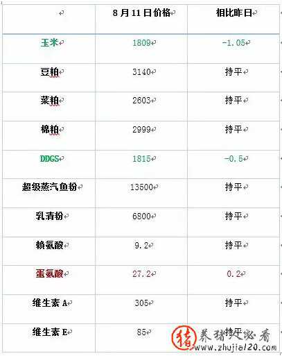 就今天的饲料市场来看,除了蛋氨酸稍微上涨了0.2元之外,其余品种大致保持了小幅下跌已经持平的状态。