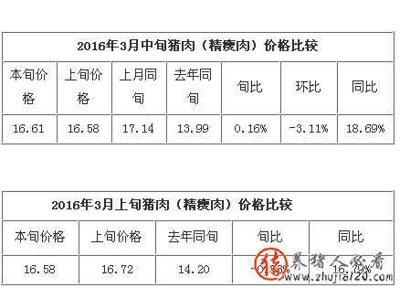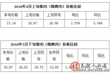 2016年4月上旬猪肉价格、旬比、环比(2016年以来猪肉价格变化)