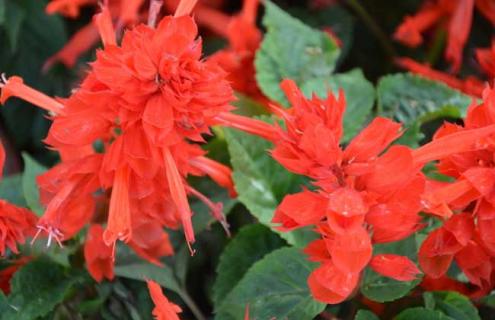 一串红别称爆仗红、象牙红、西洋红、洋赪桐等,为唇形科鼠尾草属亚灌木状草本植物,原产地在巴西,我国各地庭园中广泛栽培,花序修长,色红鲜艳,花期又长,适应性强,为城市和园林中最普遍栽培的草本花卉,常与浅黄色美人蕉、矮万寿菊、浅蓝或水粉色水牡丹、翠菊、矮霍香蓟等配合布置。