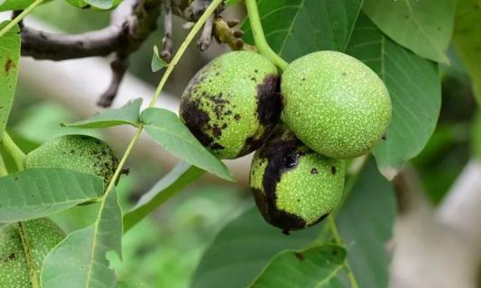 由于近几年核桃价格的下滑。多数核桃种植户放松了管理。部分地区病虫害非常严重,尤其是黑斑病。特别是宜感品种,如清香。核桃树黑斑病,发病率高。严重的发病率在30%到50%特别严重的在80%以上。对核桃树种植户造成了具大损失。有些种植户说打了几次药都不管用。实地上是对核桃树黑斑病的发病规律,防治时期,药剂选用掌握不够正确。核桃树黑斑病主要危害果实。也危害叶面。症状出现在幼果和叶片上。一般5月初就能见到受害果实。幼果受害初期为褐色小斑点,有些象冰包打的小点,边界不规则,斑点多少不等,一到数十个,随着果实的生长,病斑凹陷,以后变黑扩大成片直至腐烂脱落。
