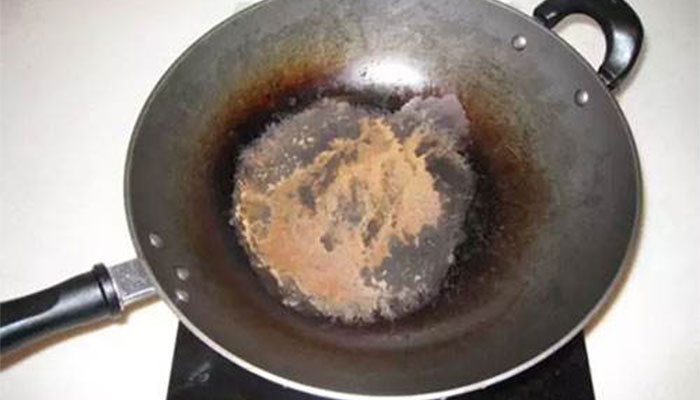 2、将铁锅内外刷干净,然后将石灰粉末、棉絮和食用油混合在一起搅拌均匀,将其均匀的涂在铁锅破损的地方,等待10分钟左右之后,再将边缘多余的部分擦拭干净即可。