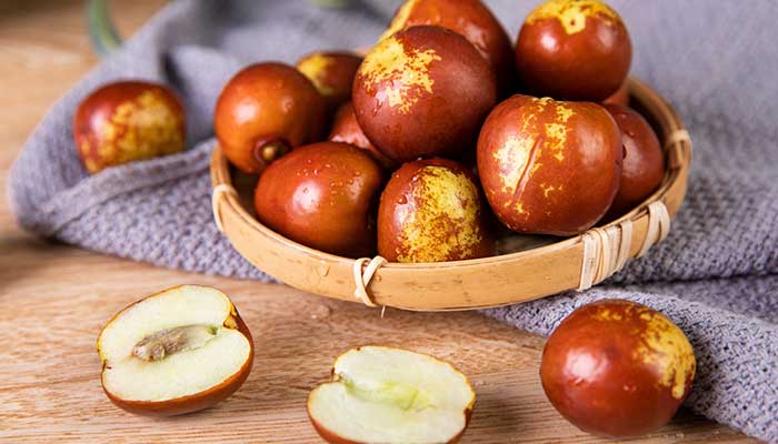 2、取一粒红枣放在蒸屉的小圆孔上,但需要注意的是,放置红枣时其尾部要朝上;