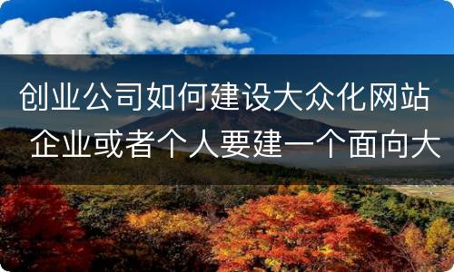 创业公司如何建设大众化网站 企业或者个人要建一个面向大众的网站
