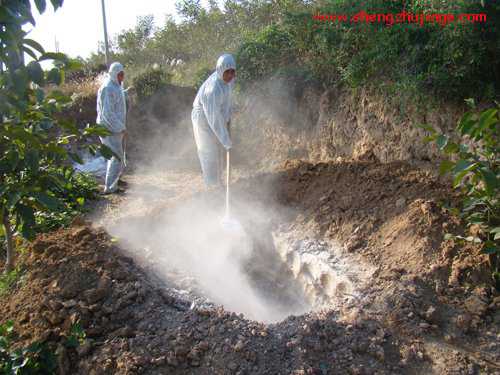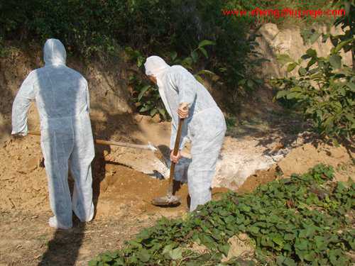 深埋法是指依照有关规定,将动物尸身及有关动物商品投入化尸窖或掩埋坑中并掩盖、消毒,发酵或分化动物尸身及有关动物商品的办法。此法常用、牢靠、简便易行适合我县处于渭北高原,黄土层深沉的地舆特色。