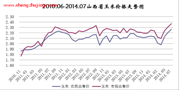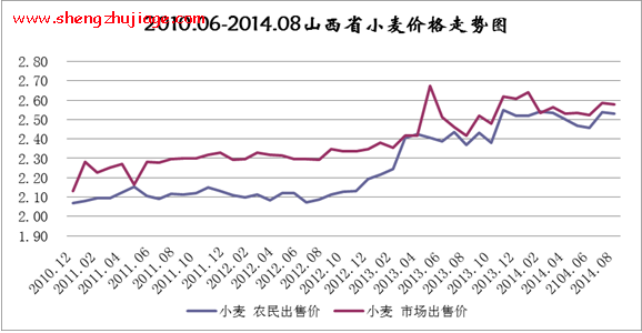 2014年8月份山西全省原粮价格上涨 2014年夏粮占粮食总产量的比重